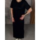 Kadın Kısa Kollu Bisiklet Yaka Yırtmaçlı Viskon Iki Iplik Elbise