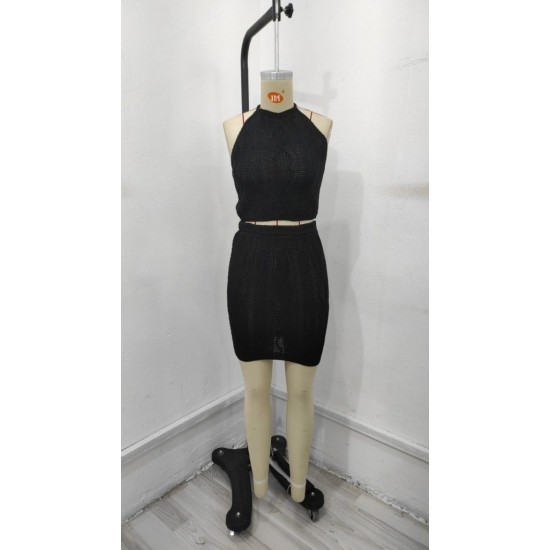 Kadın Sıfır Kol Crop Mini Etek Ikili Triko Takım, 24335