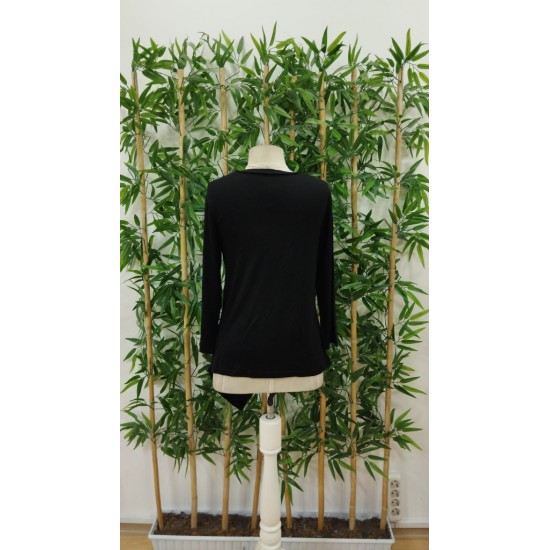 Kadın Uzun Kollu Bisiklet Yaka Etek Ucu Asimetrik Kesim Düğme Detaylı Viskon Bluz, 23228