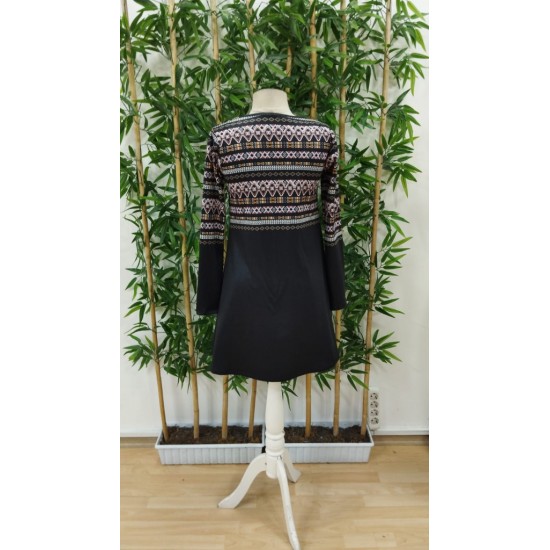 Kadın Uzun Kollu Bisiklet Yaka Etnik Desenli Kısa şardonlu Dalgıç Elbise