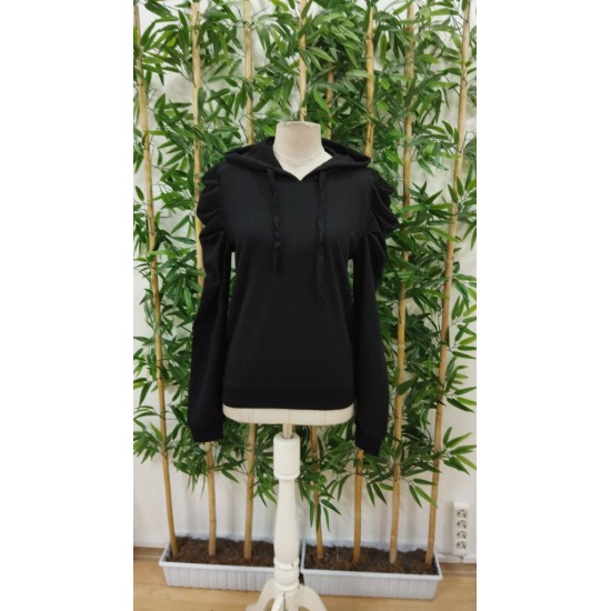 Kadın Uzun Kollu Kapşonlu Bağcıklı Kollarda Büzgü Detaylı Iki Iplik Bluz, 21933