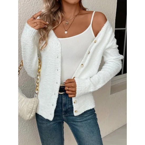 Kadın Uzun Kollu önden Düğmeli Kısa Triko Hırka, 23374