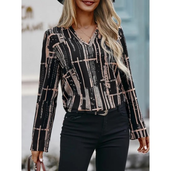 Kadın Uzun Kollu V Yakalı Desenli Dalgıç Bluz