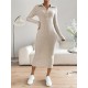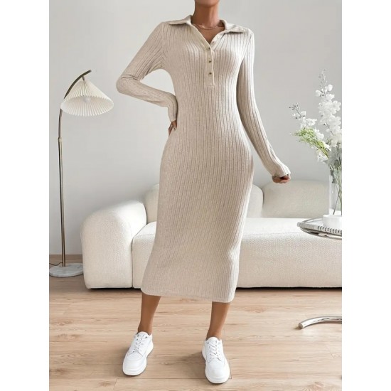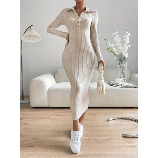 Kadın Uzun Kollu Yakalı Düğmeli şardonlu Kaşkorse Elbise, 20993