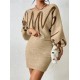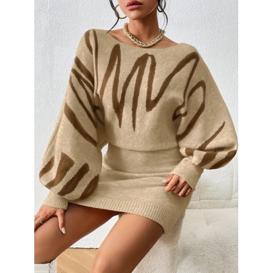 Kadın Uzun Yarasa Kollu Kayık Yaka Kısa Triko Elbise , 22481
