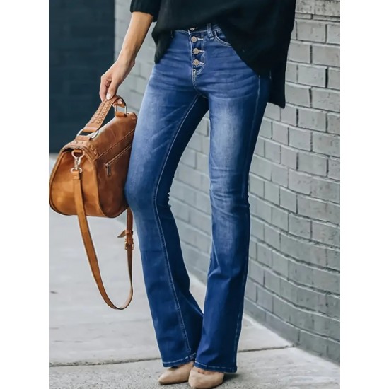 Kadın Yüksek Bel önden Düğmeli Cep Detay Ispanyol Paça Denim Pantolon , 21293